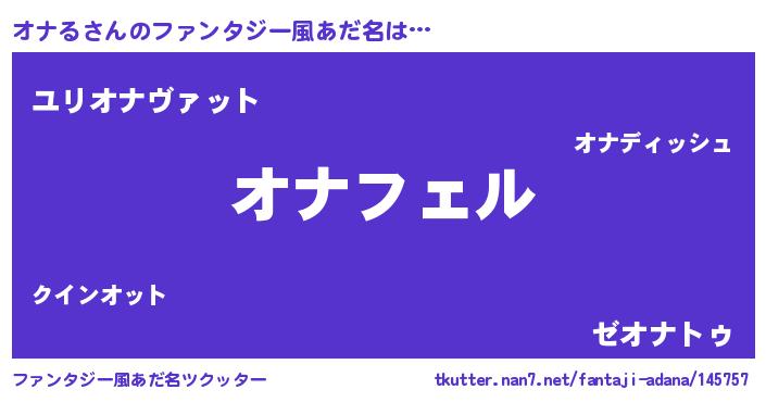 | 男性向けラノベタイトル風あだ名 | 『オナるの憂鬱』『魔法科高校のオナる』 |