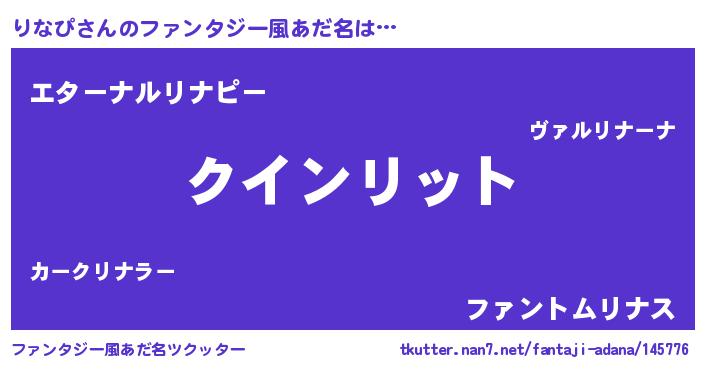 | ヒーロー風カッコイイあだ名 | 『慈愛の使者りなぴ』『天弓騎士リナ』 |
