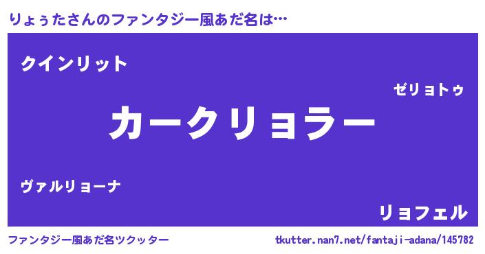 | 欧米人風あだ名 | 『りょぅた・ステッグマイヤー』 |