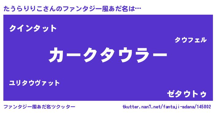 | 自動車の名前っぽいあだ名 | 『フェターウ』『タンR』『レクタス』 |