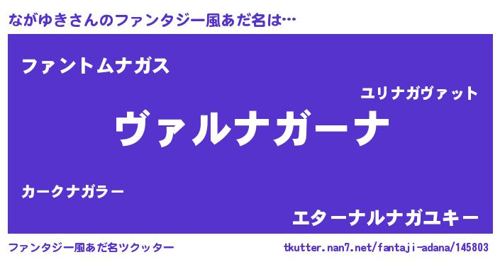 | 男性向けラノベタイトル風あだ名 | 『この素晴らしい世界にながゆきを!』 |