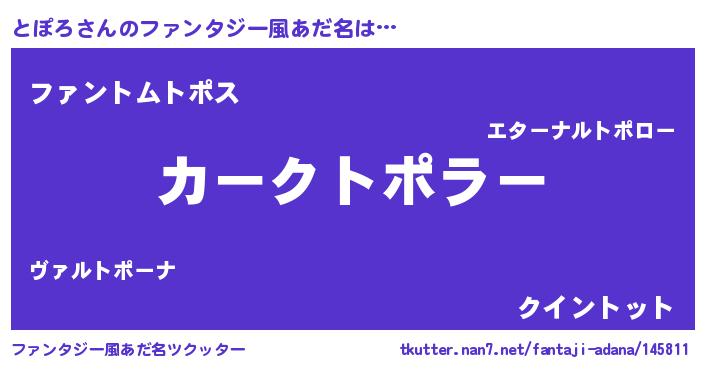 | ヒーロー風カッコイイあだ名 | 『幻影騎士トポ』『慈愛の使者とぽろ』 |