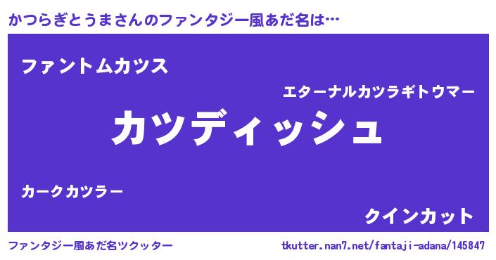 | ヒーロー風カッコイイあだ名 | 『ネオカツラギトウマ』『魔戒騎士カツ』 |