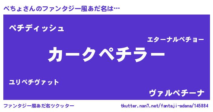 | 伝説のあだ名 | 『古より伝わる吟遊詩人ぺちょ』 |