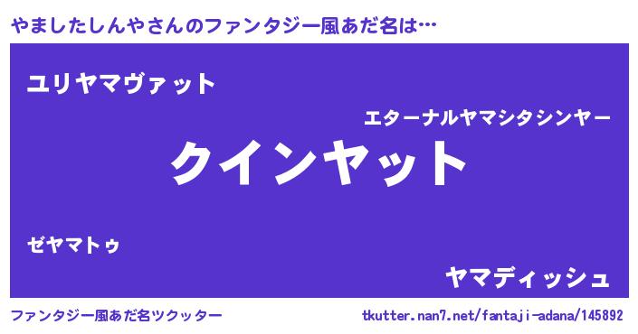 | 男性向けラノベタイトル風あだ名 | 『おまえをオタクにしてやるから、俺をやましたしんやにしてくれ! 』 |