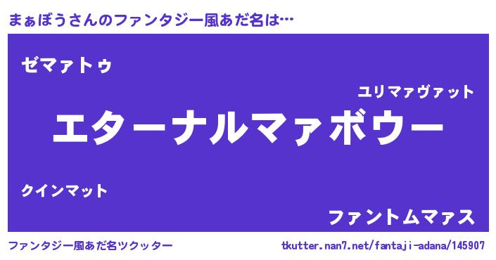 | ヒーロー風カッコイイあだ名 | 『ウルトラまぁぼうマン』『暗黒騎士マァ』 |