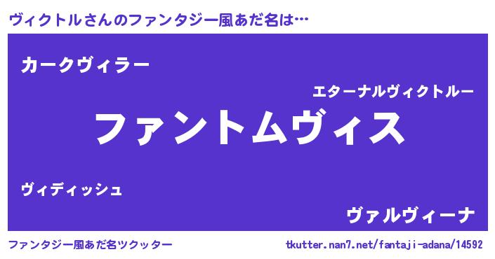 | 男性向けラノベタイトル風あだ名 | 『ダンジョンにヴィクトルを求めるのは間違っているだろうか』 |