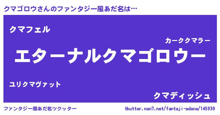 | 欧米人風あだ名 | 『クマゴロウクリステル』 |