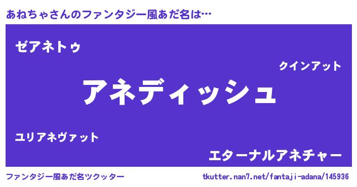 | 男性向けラノベタイトル風あだ名 | 『あねちゃという概念が存在しない退屈な世界 』 |