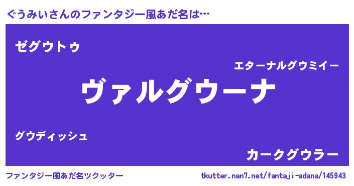 | ヒーロー風カッコイイあだ名 | 『仮面グウダー』『サイバー戦士グウミイ』 |