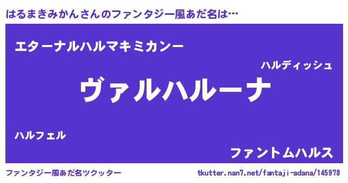 | 女子向けラノベタイトル風あだ名 | 『乙女ゲームの破滅フラグしかない悪役はるまきみかんに転生してしまった…』 |