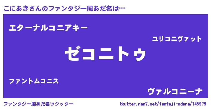| 男性向けラノベタイトル風あだ名 | 『Re:こにあきから始める異世界生活』 |