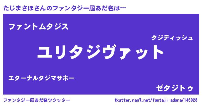 | 男性向けラノベタイトル風あだ名 | 『たじまさほ~年齢イコール彼女いない歴の魔法使い~』 |