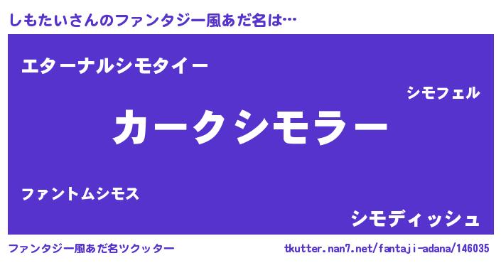 | 意味不明あだ名 | 『しもたいフォーエバー』 |
