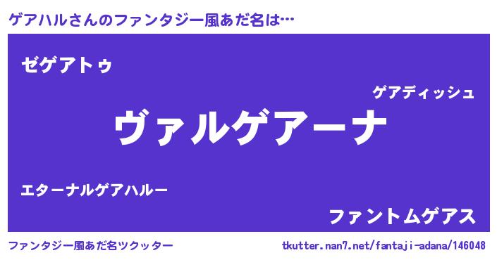 | 意味不明あだ名 | 『住所不定無職ゲアハル(14歳)』 |