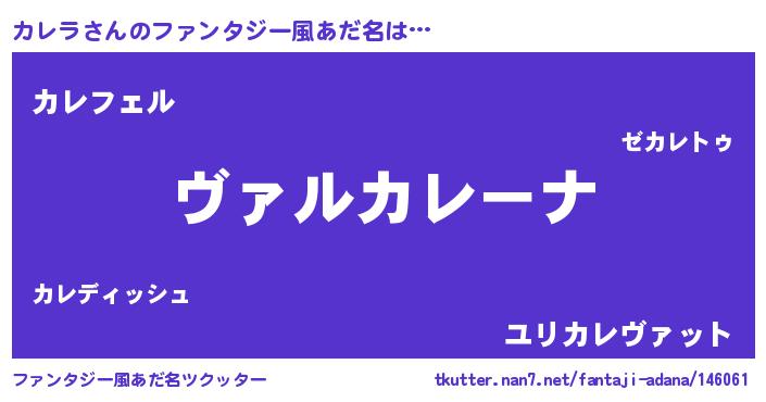 | 意味不明あだ名 | 『住所不定無職カレラ(10歳)』『自称カレラ』 |
