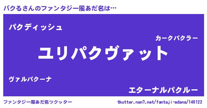 | ヒーロー風カッコイイあだ名 | 『ネオパクル』『ウルトラパクるマン』 |