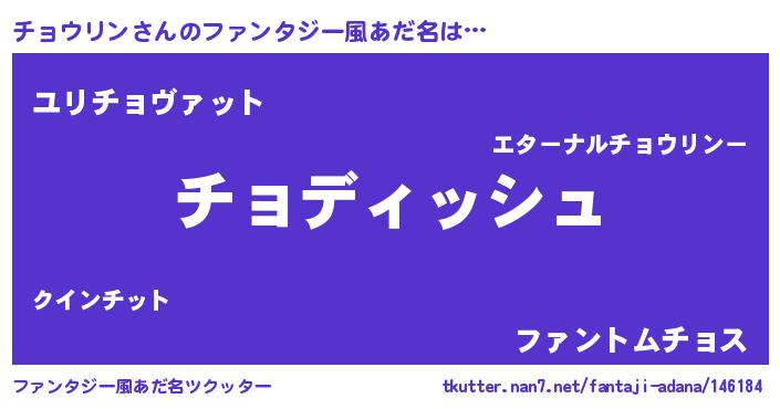 | 男性向けラノベタイトル風あだ名 | 『チョウリンという概念が存在しない退屈な世界 』 |
