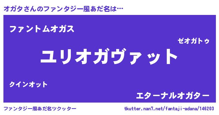 | 男性向けラノベタイトル風あだ名 | 『オガタ~年齢イコール彼女いない歴の魔法使い~』 |
