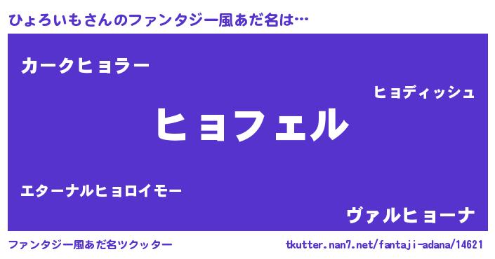 | 2回繰り返すあだ名 | 『ひょひょ』『つかつか』『ひひょょ』 |
