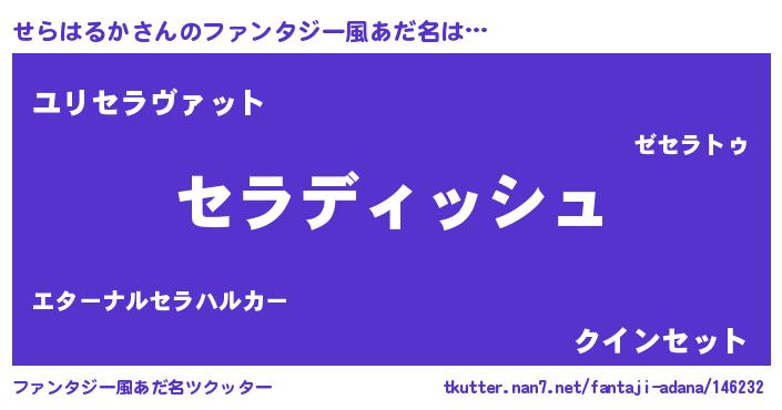 | 意味不明あだ名 | 『永久保存せらはるか』『自称せらはるか』 |
