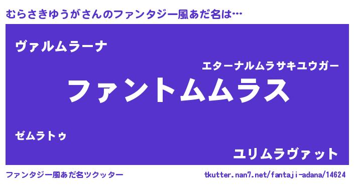 | ポケモン風あだ名 | 『ヒムラサキユウガ』『ムーライ』 |