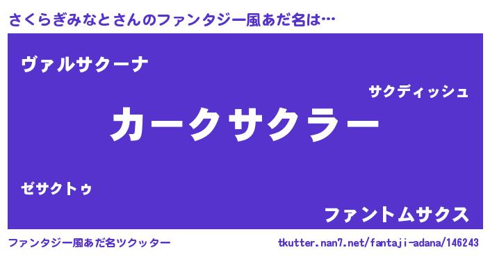 | ヘコむあだ名 | 『さくぷりん』『さくらぎみなと(小並感)』 |