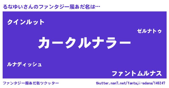 | 男性向けラノベタイトル風あだ名 | 『うちのるなゆいが世界を掌握している!』 |