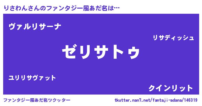 | 女子向けラノベタイトル風あだ名 | 『闇のりさわん』『りさわん恋絵巻』 |