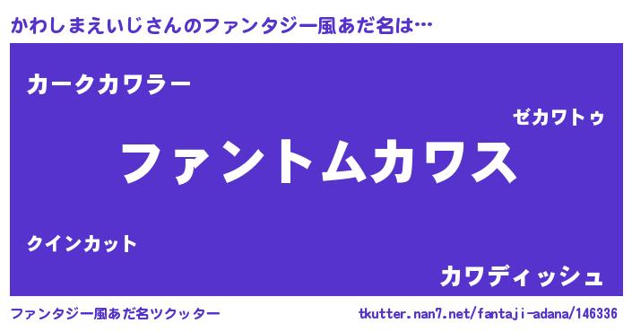 | ポケモン風あだ名 | 『カワゴンZ』『ヒカワシマエイジ』 |