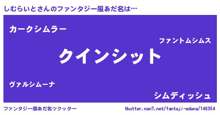 | 男性向けラノベタイトル風あだ名 | 『おまえをオタクにしてやるから、俺をしむらいとにしてくれ! 』 |