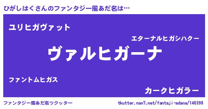 | 男性向けラノベタイトル風あだ名 | 『魔弾の王とひがしはく』 |