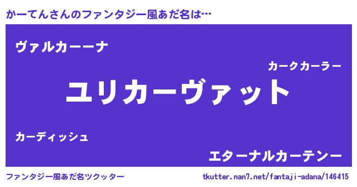| 女子向けラノベタイトル風あだ名 | 『かーてんの玉の輿計画!』 |