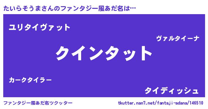 | ヘコむあだ名 | 『たいらそうま(笑)』『つくし』 |