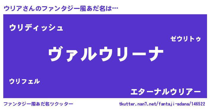 | 男性向けラノベタイトル風あだ名 | 『魔弾の王とウリア』 |