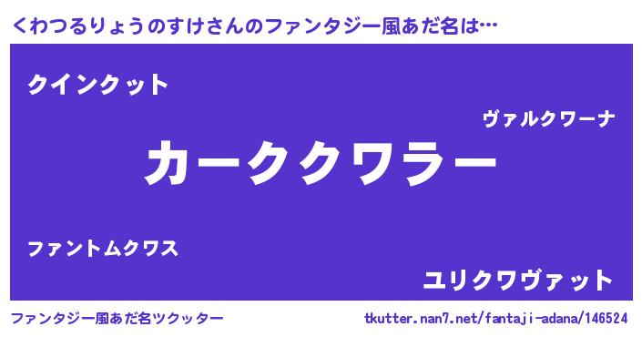 | 男性向けラノベタイトル風あだ名 | 『緋弾のクワツルリョウノスケ』 |