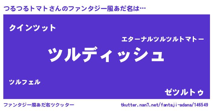 | 男性向けラノベタイトル風あだ名 | 『つるつるトマトという概念が存在しない退屈な世界 』 |