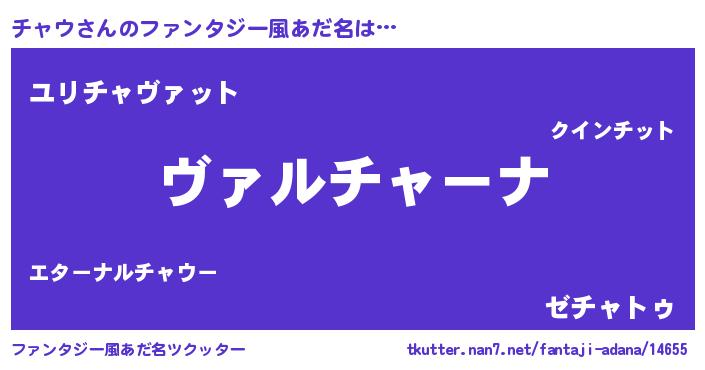 | 男性向けラノベタイトル風あだ名 | 『魔弾の王とチャウ』 |