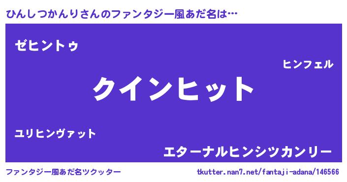 | 男性向けラノベタイトル風あだ名 | 『おまえをオタクにしてやるから、俺をひんしつかんりにしてくれ! 』 |