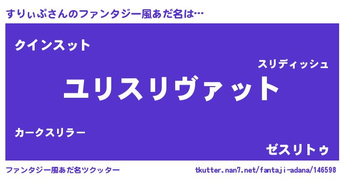 | 女子向けラノベタイトル風あだ名 | 『すりぃぷの玉の輿計画!』 |