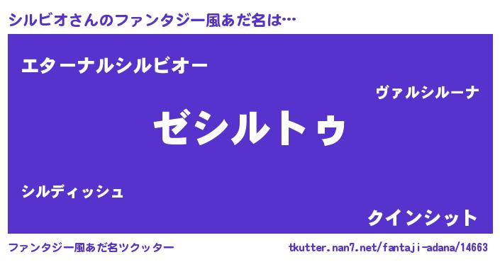 | 男性向けラノベタイトル風あだ名 | 『Re:シルビオから始める異世界生活』 |