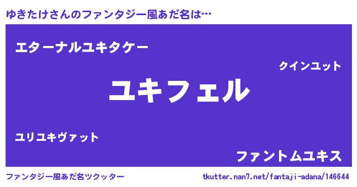 | ヒーロー風カッコイイあだ名 | 『スーパーユキタケ』『黄金騎士ユキ』 |
