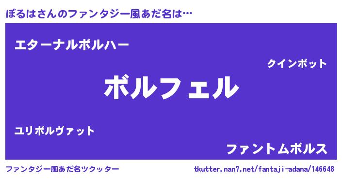 | 意味不明あだ名 | 『ペロリンぼるは』『ぼるはフォーエバー』 |