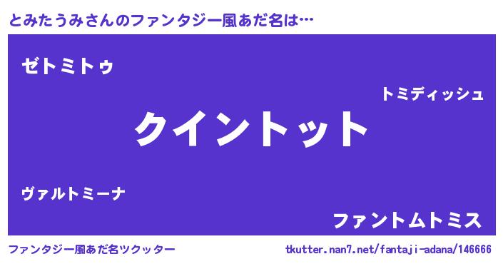 | 男性向けラノベタイトル風あだ名 | 『おまえをオタクにしてやるから、俺をとみたうみにしてくれ! 』 |
