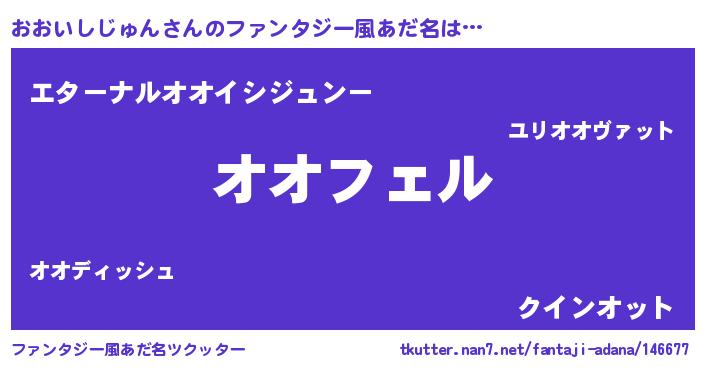 | 男性向けラノベタイトル風あだ名 | 『おおいしじゅんの憂鬱』 |