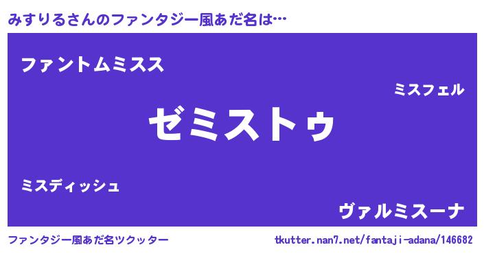 | 男性向けラノベタイトル風あだ名 | 『Re:みすりるから始める異世界生活』 |