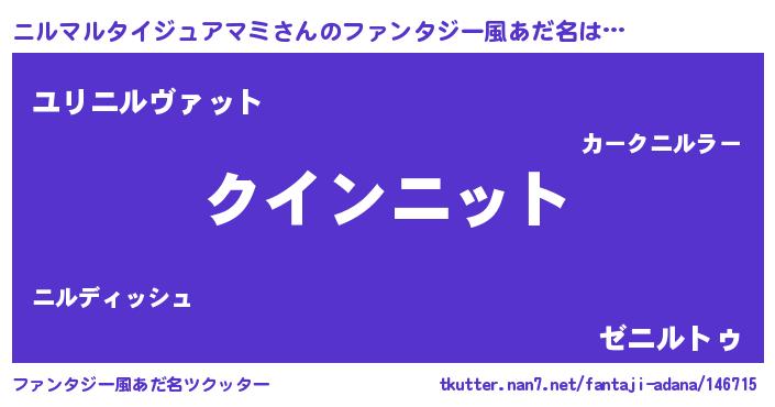 | 女子向けラノベタイトル風あだ名 | 『ニルマルタイジュアマミ夫妻のなれそめ』 |
