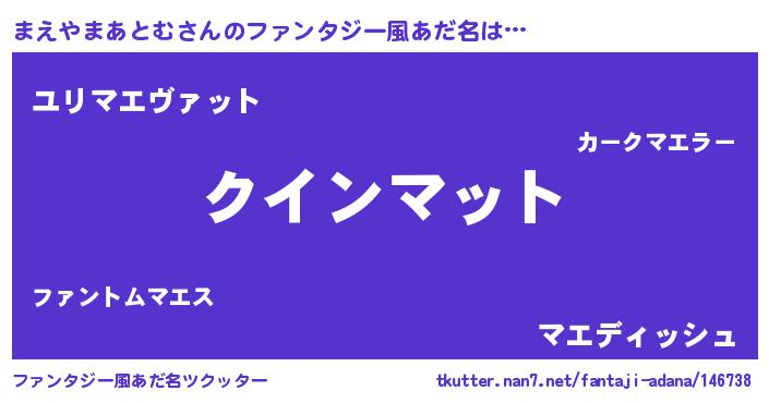 | 伝説のあだ名 | 『救世主となる錬金術士まえやまあとむ』 |