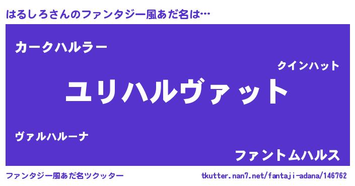 | 男性向けラノベタイトル風あだ名 | 『はるしろに滅ぼされるだけの簡単なお仕事です』 |