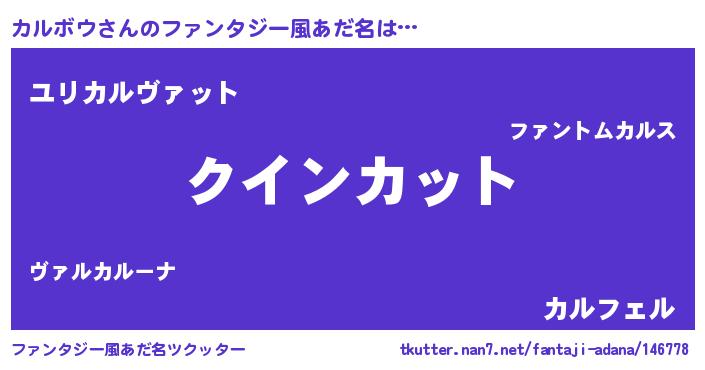 | 男性向けラノベタイトル風あだ名 | 『おまえをオタクにしてやるから、俺をカルボウにしてくれ! 』 |